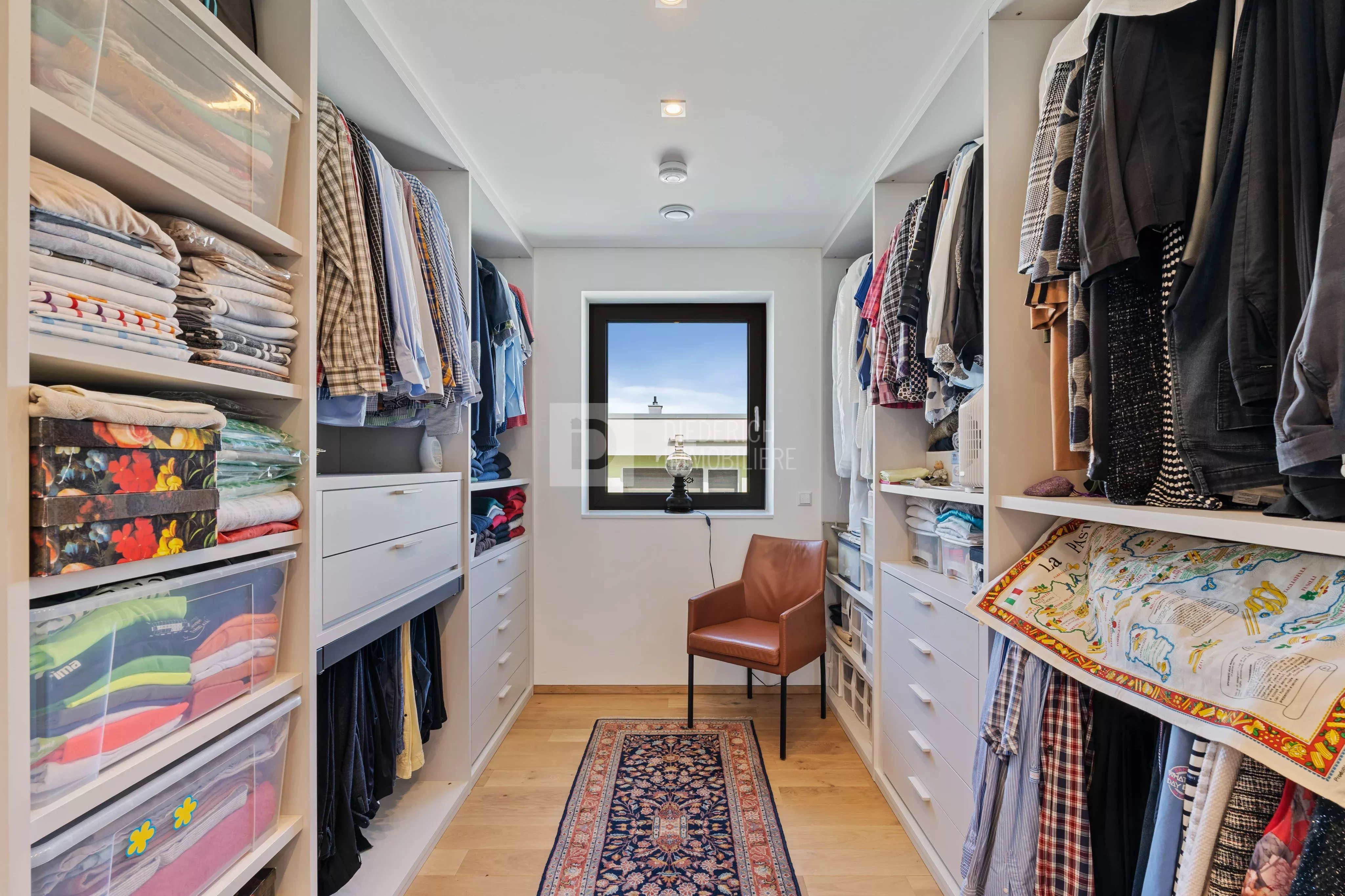 L'espace nuit, parfaitement agencé, se compose de trois chambres spacieuses, dont une suite parentale avec vaste dressing sur mesure et sa salle de bains privative équipée d'une double vasque. L'appartement dispose également d'une seconde salle de douche haut de gamme. Côté pratique, le bien comprend une buanderie dédiée (avec raccordements pour machine à laver/sèche-linge et évier), une pièce technique séparée abritant la VMC, un débarras et un WC séparé.